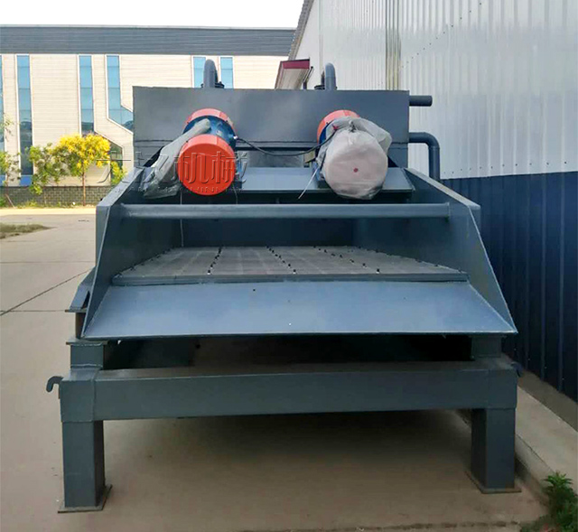 脫水篩由篩箱、支承裝置、電機(jī)支架、振動器、萬向傳動軸、膠帶聯(lián)軸器、電機(jī)等部件組成。